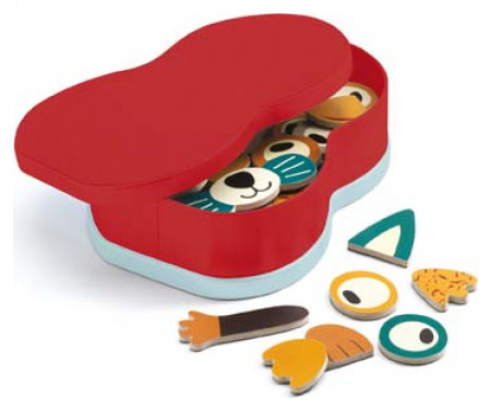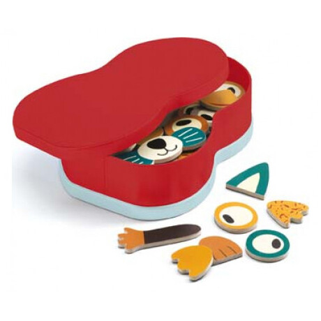 Μαγνητικό παιχνίδι κατασκευών, όπου τα παιδιά μπορούν να δημιουργήσουν πρόσωπα ζώων στο μεταλλικό κουτί της συσκευασίας.