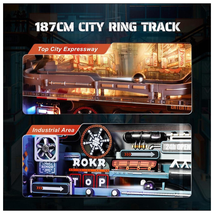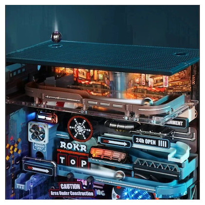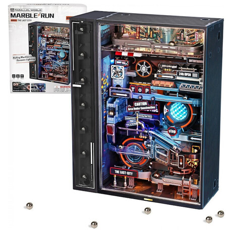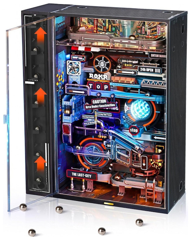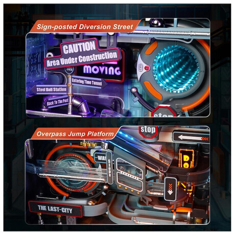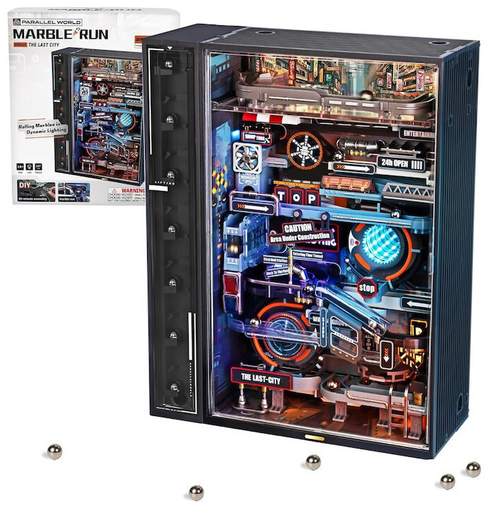 Η Τελευταία Πόλη είναι ένα παζλ τρένου μαρμάρων κατασκευασμένο από πλαστικό (PVC, ABS), LED και μέταλλο, σχεδιασμένο σε έναν μετα-βιομηχανικό κόσμο. Τι προσφέρει;