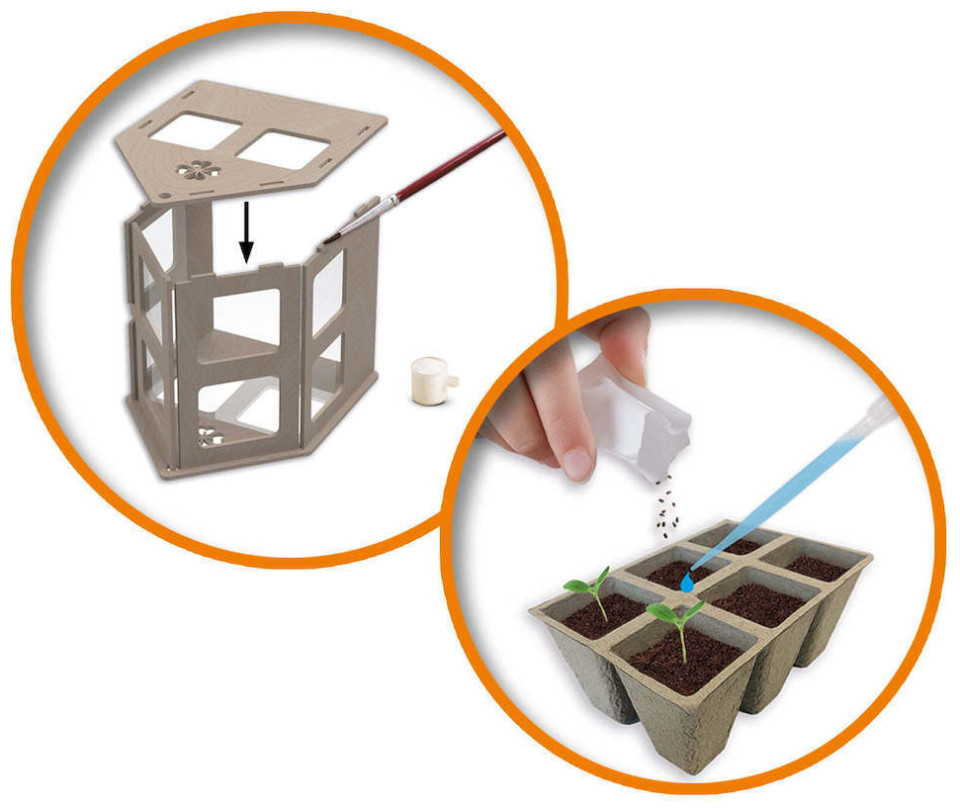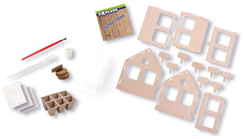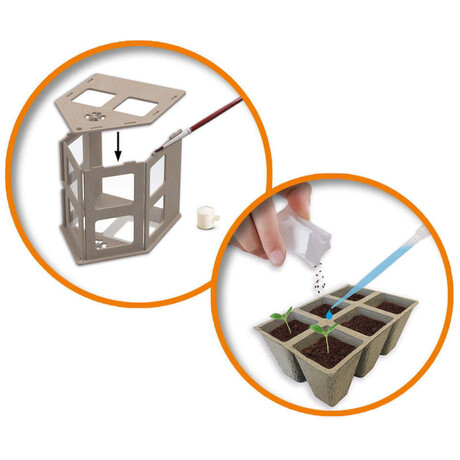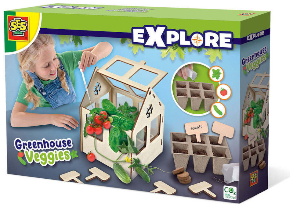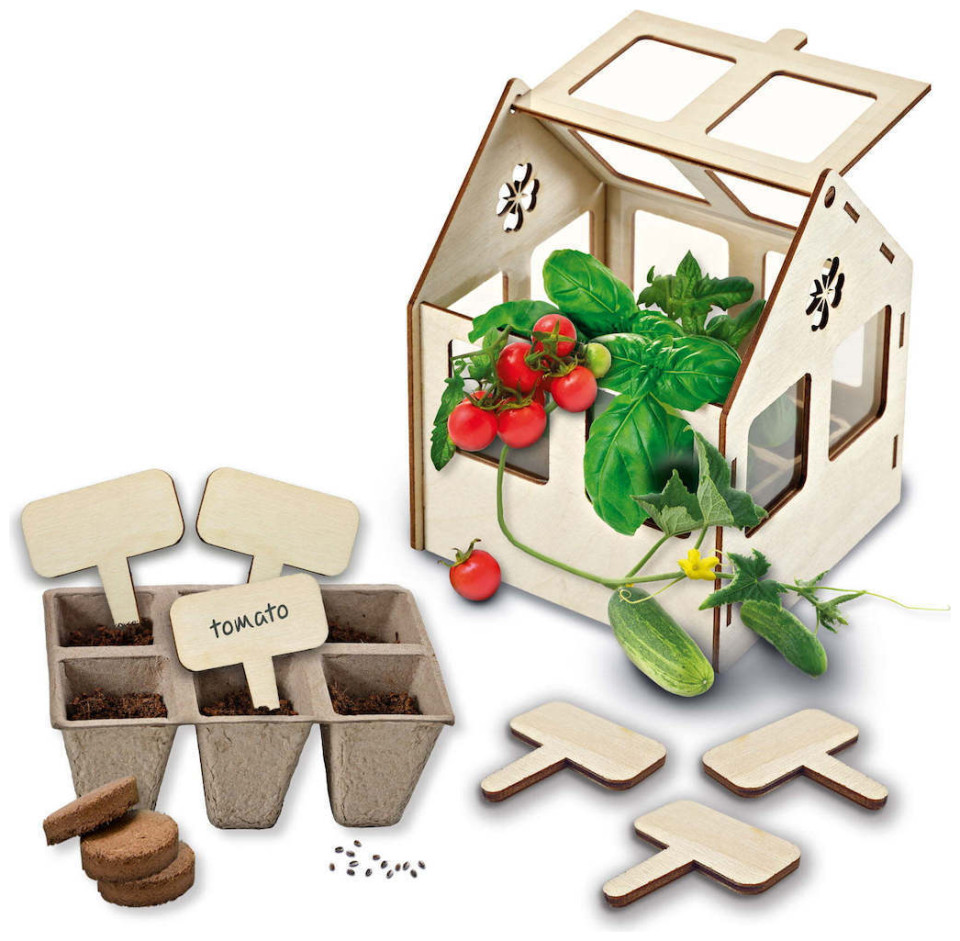 Καλλιεργήστε ντομάτες, αγγούρια και βότανα στο δικό σας θερμοκήπιο! Με αυτό το σετ, μπορείτε να φτιάξετε γρήγορα και εύκολα το δικό σας θερμοκήπιο. Φροντίστε καλά τα λαχανικά και τα βότανα σας, γιατί όταν τελειώσουν να καλλιεργούνται, μπορείτε να τα φάτε! Το σετ αποτελείται από ένα ξύλινο θερμοκήπιο που μπορεί να συναρμολογηθεί χωρίς εργαλεία. Το θερμοκήπιο διαθέτει όλο τον απαραίτητο εξοπλισμό για τη σπορά σπόρων, όπως ένα δοχείο, χώμα και σπόρους. Όλα όσα χρειάζεστε για να καλλιεργήσετε τα δικά σας λαχανικά!