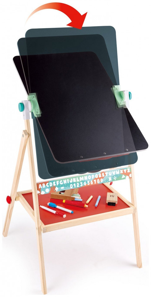 Αφήστε τη φαντασία σας έξω από το κουτί και χαρείτε με αυτό το φανταστικό καβαλέτο διπλής όψης, ελεύθερης τοποθέτησης! Γυρίστε για να επιλέξετε την πλευρά του μαυροπίνακα ή του πίνακα και, στη συνέχεια, γίνετε δημιουργικοί!
