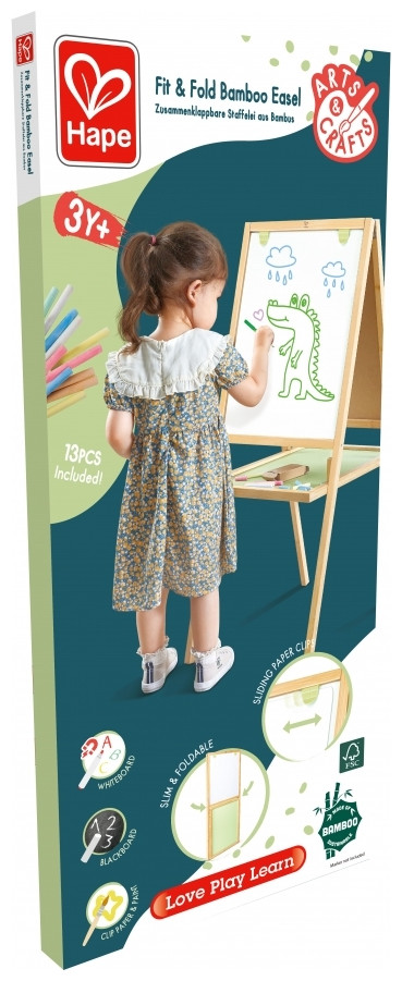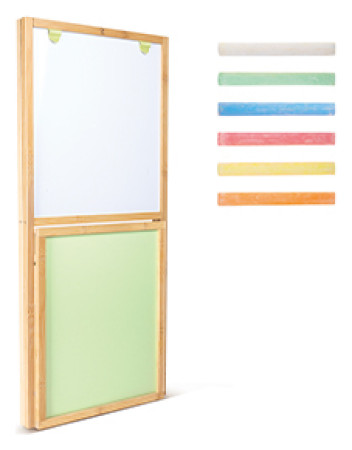 Πίνακας 2 σε 1 της εταιρίας Hape, που περιλαμβάνει μια επιφάνεια μαγνητική για να μπορεί το παιδί να παίζει με μαγνήτες, καθώς και άλλη μία επιφάνεια μαυροπίνακα για να ζωγραφίζει με κιμωλίες. Τα παιχνίδια αυτού του τύπου συμβάλλουν ιδιαίτερα στην ανάπτυξη των κινητικών και οπτικών δεξιοτήτων του παιδιού, προσφέροντάς του ταυτόχρονα ατελείωτες ώρες δημιουργικού παιχνιδιού. Επιπλέον, πρόκειται για παιχνίδια με εκπαιδευτικό χαρακτήρα, μιας και το παιδί ανακαλύπτει τον κόσμο των χρωμάτων μέσω της ζωγραφικής καθώς και των σχημάτων και γραμμάτων μέσω της γραφής.