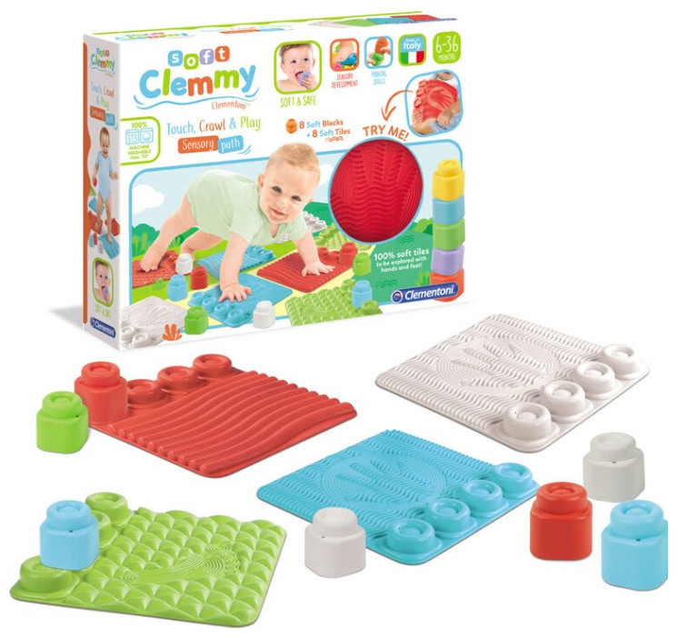 Age: 6-36 months. Stimulates tactile perception, observation skills and manual skills, thanks to the shapes of the pieces the child can have fun fitting the blocks together to create lots of towers.