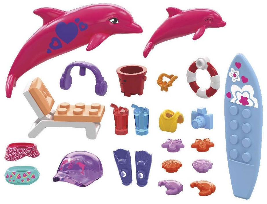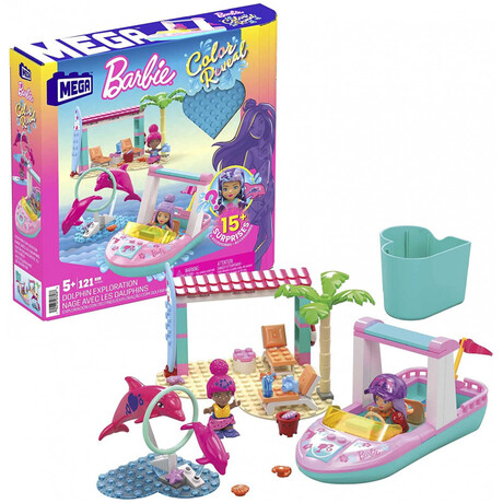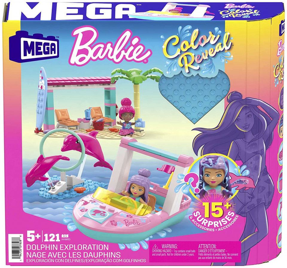 Τα σετ κατασκευών MEGA™ Barbie® Color Reveal™ κρύβουν διασκεδαστικές εκπλήξεις. Η εμφάνιση κάθε μικρής κούκλας είναι ένα μυστήριο που περιμένει να αποκαλυφθεί. Ξεκινήστε ανοίγοντας το δοχείο σε σχήμα καρδιάς και βρίσκοντας τα 2 σακουλάκια με τις εκπλήξεις. Στο εσωτερικό θα βρείτε 10 εκπλήξεις, όπως μία μικρή κούκλα Color Reveal™.