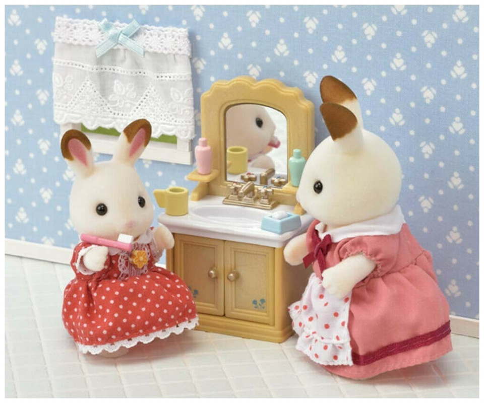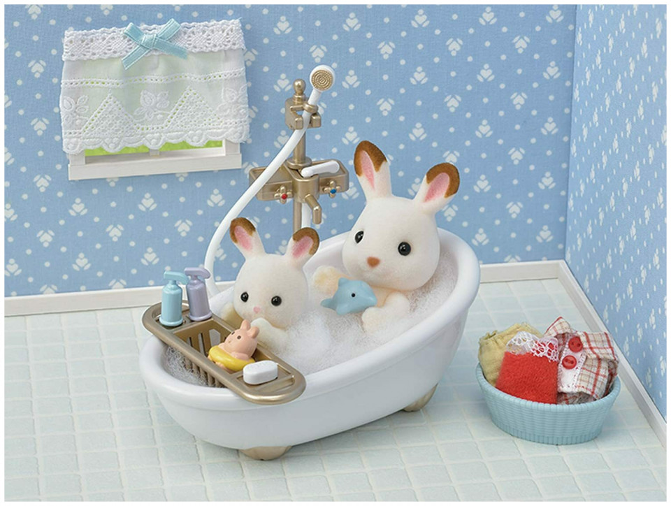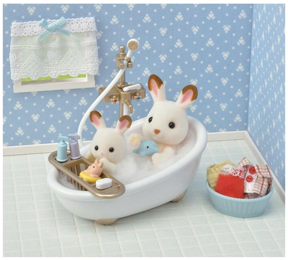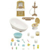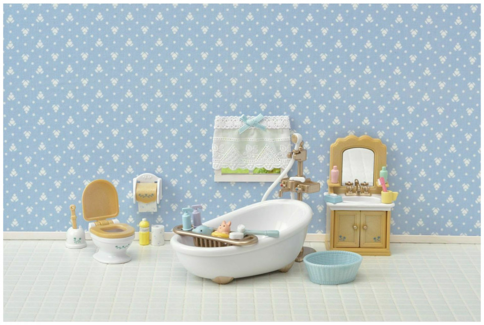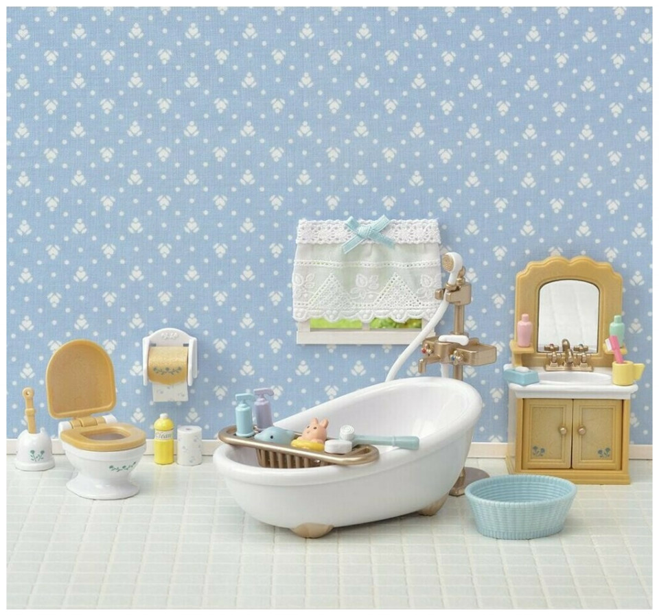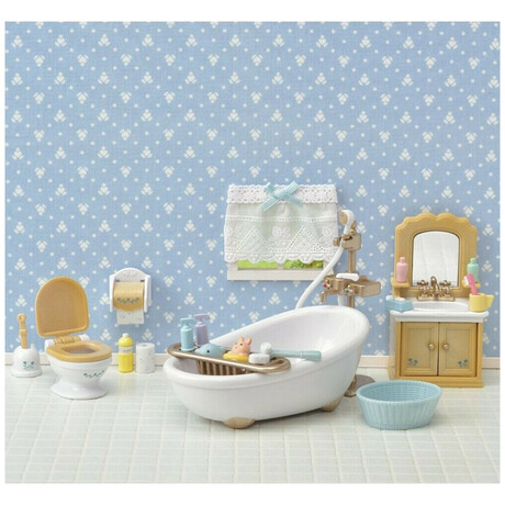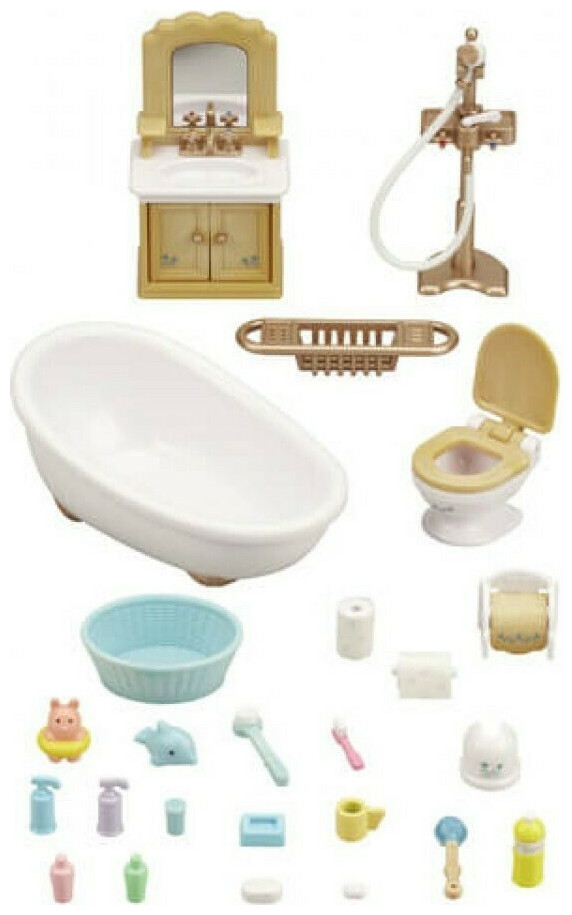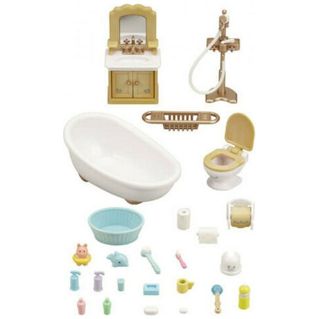 Κατάλληλο για ηλικίες 3+. Περιεχόμενα Συσκευασίας Μπάνιο, ντους, τουαλέτα, νεροχύτης, καλάθι άπλυτων, θήκη χαρτιού τουαλέτας, χαρτί υγείας (με ρολό), χαρτί υγείας (χωρίς ρολό), μπουκάλι απορρυπαντικού, βούρτσα τουαλέτας, πιγκάλ, παιχνίδι μπάνιου (δελφίνι), παιχνίδι μπάνιου (λαγουδάκι) , μπουκάλι σαμπουάν, μπουκάλι κοντίσιονερ, βούρτσα σώματος, σαπούνι σώματος, φλιτζάνι, λοσιόν γάλακτος, λοσιόν, σαπούνι, δίσκος σαπουνιού, οδοντόβουρτσα (Σύνολο 25 αντικείμενα)