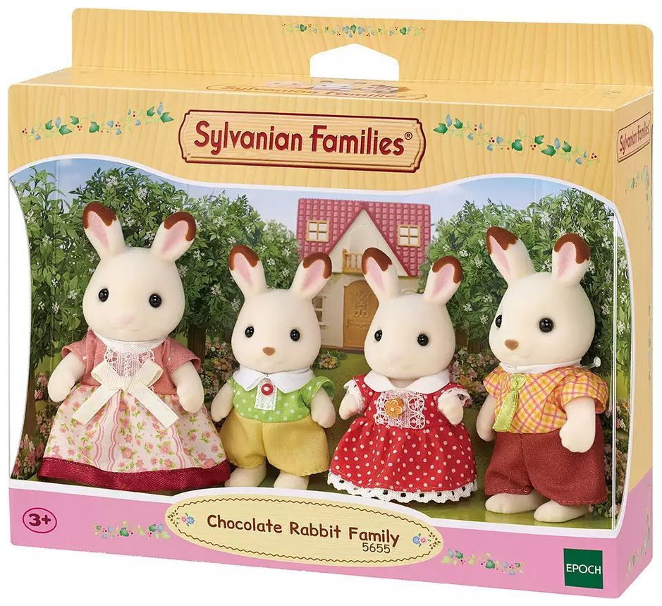 Σετ τεσσάρων φιγούρων: ο μπαμπάς ο Φράσιερ, η μαμά η Τέρι, το κοριτσάκι η Φρέγια και το αγοράκι ο Κόκο. Κάθε φιγούρα έχει σοκολατένιο χρώμα στις άκρες από τα αυτάκια του. Τα χέρια, τα πόδια και τα κεφάλια των φιγούρων μπορούν να μετακινηθούν για να τεθούν σε διαφορετικές στάσεις. Τα ρούχα μπορούν να αφαιρεθούν για να αλλάξουν τα ρούχα των φιγούρων. Συνδυάστε το με το μωράκι Σοκολατένιο Κουνελάκι, τα δίδυμα Σοκολατένια Κουνελάκια, το Σετ Φροντίδας των Τρίδυμων Σοκολατένιων, τη Σειρά Κορίτσι της Πόλης -Σοκολατένιο Κουνελάκι - και τους Παππούδες Σοκολατένια Κουνελάκια (πωλούνται χωριστά) για ένα παιχνίδι γεμάτο φαντασία με όλη την οικογένεια Σοκολατένιο Κουνελάκι.