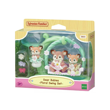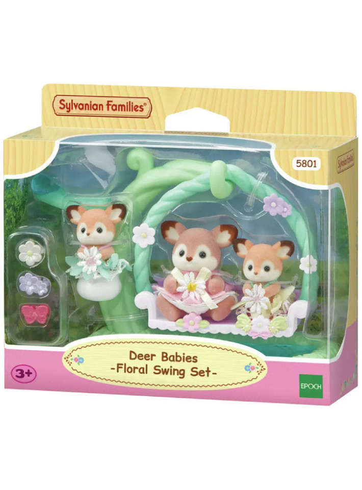 Το Sylvanian Families Deer Babies - Floral Swing Set (5801) είναι ένα γλυκό και παραμυθένιο σετ παιχνιδιού που μεταφέρει τα παιδιά σε έναν ανθισμένο κήπο γεμάτο φαντασία. Το σετ περιλαμβάνει δύο αξιαγάπητα μωρά ελαφάκια Sylvanian Families, ντυμένα με χαριτωμένα ρουχαλάκια, καθώς και μια όμορφη κούνια διακοσμημένη με λουλούδια. Η κούνια ταλαντεύεται απαλά, προσφέροντας μια ήρεμη και διασκεδαστική εμπειρία παιχνιδιού που ενθαρρύνει τη δημιουργία τρυφερών ιστοριών.