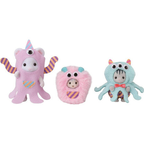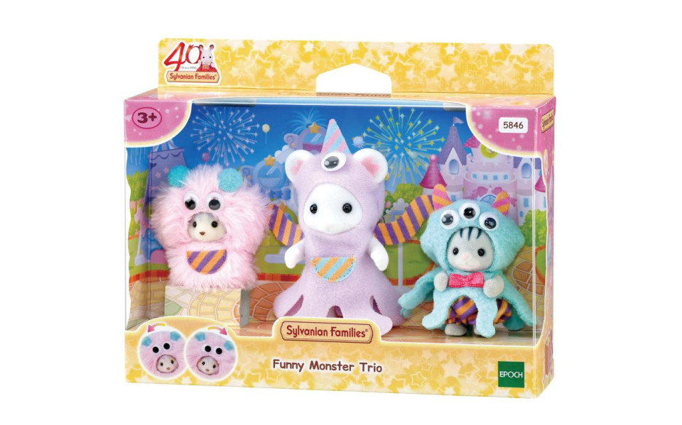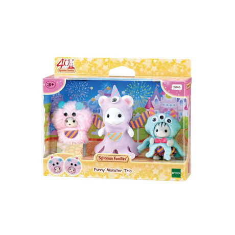 Το Sylvanian Families - Funny Monster Trio (5846) είναι ένα διασκεδαστικό και πρωτότυπο σετ που φέρνει μια παιχνιδιάρικη, μεταμφιεσμένη πινελιά στον κόσμο των Sylvanian Families. Το σετ περιλαμβάνει τρεις χαριτωμένες φιγούρες μωρών, ντυμένες με πολύχρωμες στολές τεράτων, δημιουργώντας μια ξεχωριστή και χιουμοριστική ατμόσφαιρα που ενθαρρύνει το δημιουργικό παιχνίδι και τη φαντασία.