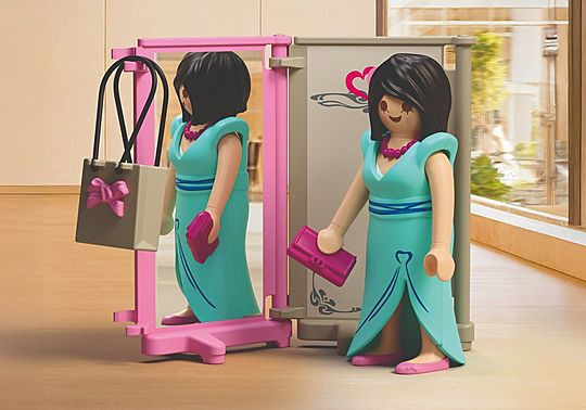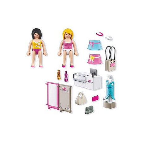 Φιγούρες: 2 γυναίκες Αξεσουάρ: 2 κολιέ, 2 φούστες, 1 βιτρίνα, 1 παραβάν, 1 τσάντα με κορδέλα, 1 τσάντα, 1 τσαντάκι, 1 πορτοφόλι, 2 αρώματα, 1 κούκλα βιτρίνας, 1 φόρεμα, 1 ταμπελάκι τιμών