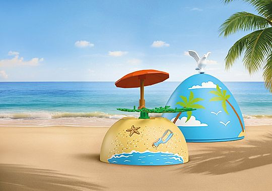 Τα νέα αυγά PLAYMOBIL προσφέρουν ακόμα μεγαλύτερη διασκέδαση! Κάθε χρωματιστό αυγό κρύβει πολλές εκπλήξεις: Δύο φιγούρες, πολλά αξεσουάρ και ένα μικρό σκηνικό παιχνιδιού που μπορεί να συναρμολογηθεί αμέσως χρησιμοποιώντας τα δύο μέρη του. Αχόι! Ένας πειρατής έρχεται με τον καράβι του για να διεκδικήσει από τον αντίπαλό του τον θησαυρό! Το κανόνι στη σπηλιά του θησαυρού είναι γεμάτο, τα σπαθιά είναι έτοιμα – η μονομαχία αρχίζει! Το αυγό μπορεί να χρησιμοποιηθεί και ως κουμπαράς.