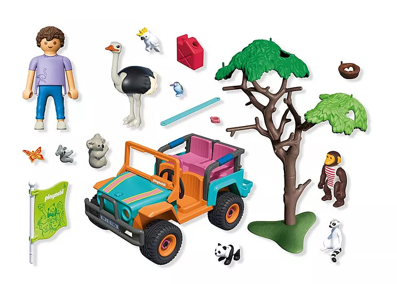 Φορέστε τις ζώνες – πάμε για σαφάρι στη ζούγκλα με το Όχημα 4x4 των Animals & Friends! Με χώρο για τέσσερις επιβάτες και ζώα που βρίσκουν τα δικά τους αγαπημένα σημεία, η διασκέδαση δεν σταματά ποτέ. Το μωρό πάντα κοιτάει από το παράθυρο, ο παιχνιδιάρης πίθηκος σκαρφαλώνει, και το κοάλα αγκαλιάζει τη μαμά του. Χρησιμοποιήστε το δέντρο με σκιά, τη φωλιά του πουλιού και πολλά ακόμη αξεσουάρ για να στήσετε τη δική σας σκηνή περιπέτειας. Με τόσες λεπτομέρειες, αυτό το σετ ζωντανεύει κάθε παιχνίδι στη ζούγκλα του δωματίου!