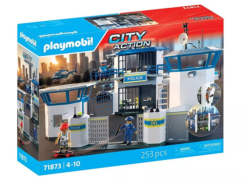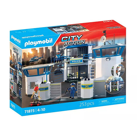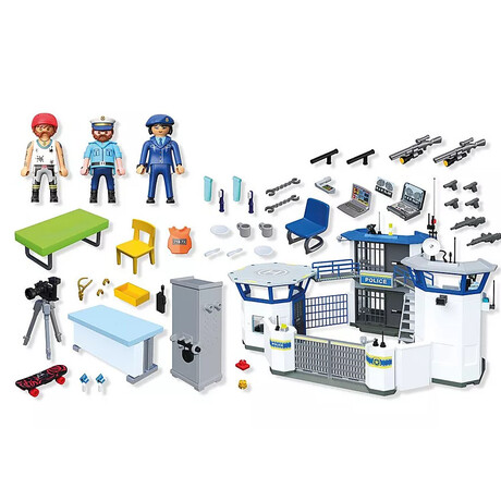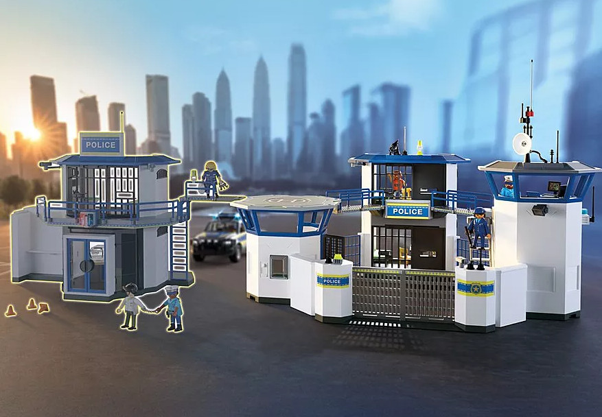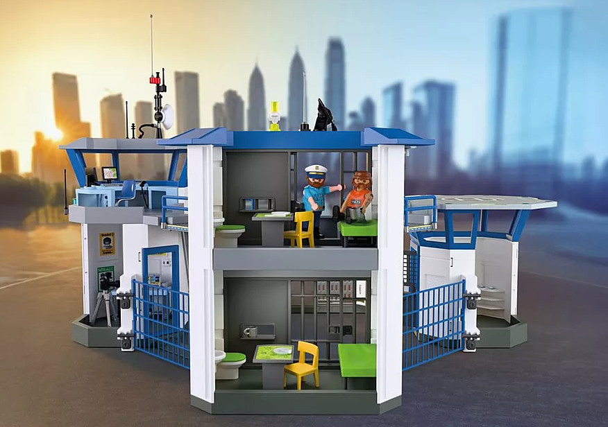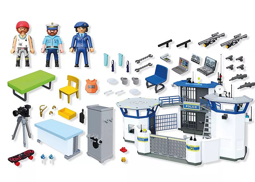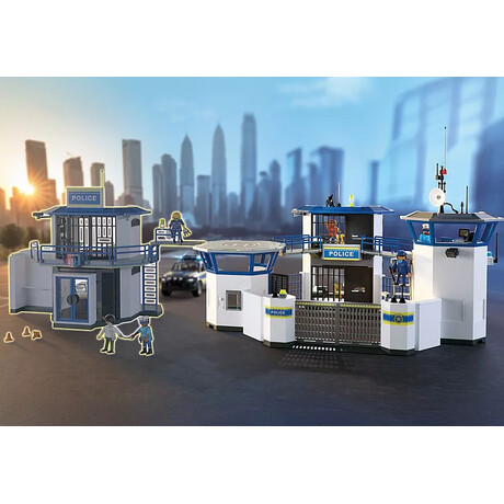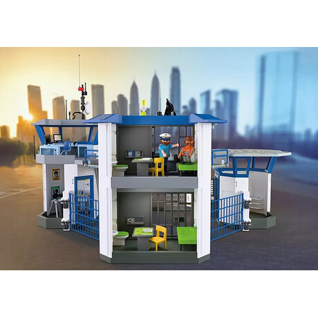 Η καταδίωξη ξεκινά στο Αρχηγείο Αστυνομίας της PLAYMOBIL! Οι εγκληματίες πρέπει να προσέχουν! Οι αστυνομικοί είναι έτοιμοι με σαρωτές αποτυπωμάτων (περιλαμβάνονται διαφανή φύλλα), ντουλάπι όπλων που κλειδώνει και ακόμη, στολές φυλακισμένων για να ντύσουν τους υπόπτους. Πιάστε τους εγκληματίες που προσπαθούν να ξεφύγουν μέσω κρυφών τοίχων και ξεκινήστε μια καταδίωξη από το ελικοδρόμιο. Με έναν γκάνγκστερ που κάνει σκέιτ, ένα πολυάσχολο δωμάτιο ελέγχου και αμέτρητα αξεσουάρ, οι αναδυόμενοι ντετέκτιβ μπορούν να βυθιστούν σε ατελείωτες ιστορίες εξάρθρωσης του εγκλήματος. Αυτό το σετ δράσης της PLAYMOBIL προσφέρει διασκέδαση και έξυπνες ανατροπές σε κάθε αποστολή!