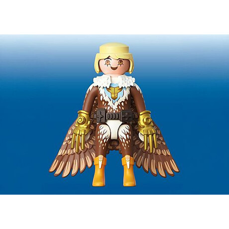 Ψηλά πάνω από την πόλη, ο κίνδυνος δεν έχει καμία τύχη! Με κινούμενες φτερούγες γερακιού και αφαιρούμενα γάντια-νύχια, αυτή η ατρόμητη ηρωίδα πέφτει στη δράση για να υπερασπιστεί τον ουρανό. Η διαπεραστική της ματιά και το κομψό κράνος προκαλούν φόβο στους κακούς, ενώ το όπλο ρίψης εξασφαλίζει ότι κανένας εχθρός δεν θα ξεφύγει. Είτε πετάει μέσα από τα σύννεφα είτε εξαπολύει ξαφνικές επιθέσεις από ψηλά, αυτή η φιγούρα PLAYMOBIL είναι έτοιμη για κάθε ηρωική περιπέτεια.