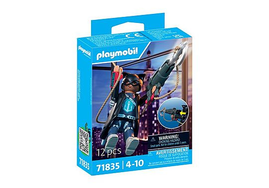 Όταν νυχτώνει στην PLAYMOPOLIS, ο μυστηριώδης Shadow Hero επιτίθεται! Ντυμένος με σκιές και εξοπλισμένος με τον ισχυρό του γάντζο, ο Silver Hook κρέμεται από τα κτίρια και εξαφανίζεται με μια αστραπή. Με τον υπολογιστή στον βραχίονα για πληροφορίες και εναλλασσόμενα μαλλιά, είναι πάντα ένα βήμα μπροστά. Είτε περνά από παγίδες είτε εξαπολύει ξαφνικές επιθέσεις με το βλήμα του, καμία αποστολή δεν είναι υπερβολικά επικίνδυνη. Αυτό το σετ PLAYMOBIL περιλαμβάνει μία φιγούρα και μια ποικιλία αξεσουάρ για συναρπαστικές, μυστικές περιπέτειες στις σκοτεινές γωνιές της πόλης!