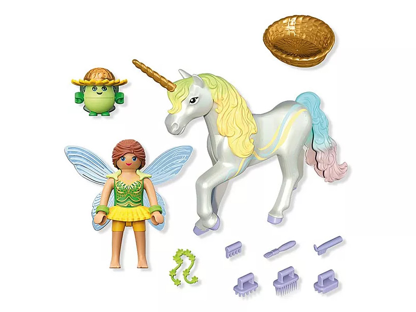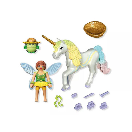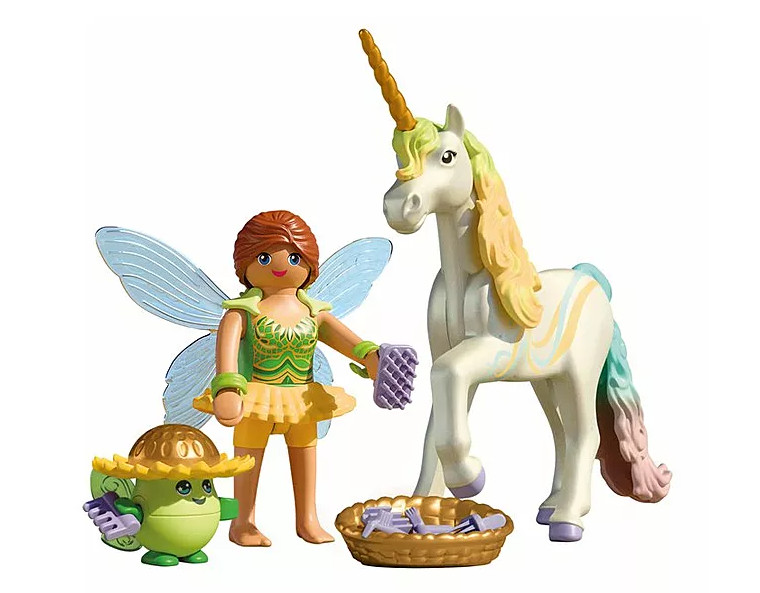 Ελάτε σε έναν εκπληκτικό κόσμο μαγείας με τη νεράιδα και τον λαμπερό μονόκερο που αγαπά όλα τα πολύχρωμα! Μαζί με τη φίλη της τη νεράιδα και το Joyling, διαδίδει τη χαρά στο Βασίλειο των Μονόκερων. Με χαίτη, ουρά και κέρατο που αλλάζουν, τα παιδιά μπορούν να δημιουργήσουν τα δικά τους μοναδικά σχέδια μονόκερου αναμειγνύοντας και συνδυάζοντας τα με άλλους μονόκερους της PLAYMOBIL. Αυτό το σετ PLAYMOBIL είναι ιδανικό για μικρούς ονειροπόλους που αγαπούν τη δημιουργικότητα, τη λάμψη και την αφήγηση ιστοριών!