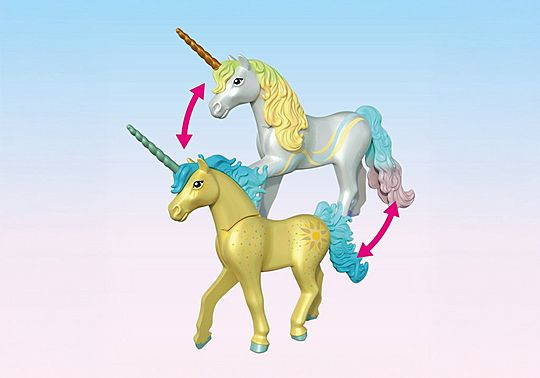 Γνώρισε τον μονόκερο «Λουλούδι του ήλιου» και τη μαγευτική νεραϊδοφίλη! Οι νεράιδες λατρεύουν το «Λουλούδι του ήλιου», επειδή με την ηλιόλουστη φύση του φωτίζει κάθε μέρα. Με την ακλόνητη αισιοδοξία του βοηθάει στην αντιμετώπιση ακόμη και πολύ δύσκολων εργασιών με απλότητα. Η μαγευτική νεράιδα υποστηρίζεται από τον χαριτωμένο συνοδό της, τον Joyling, που βοηθάει με πολλή χαρά και αφοσίωση στη φροντίδα του μονόκερου. Μπορείς να αλλάζεις τη χαίτη, την ουρά και το κέρατο του μονόκερου. Έτσι μπορείς να δημιουργείς - με άλλους μονόκερους της νέας σειράς μονόκερων PLAYMOBIL - ξεχωριστούς και μοναδικούς μονόκερους!