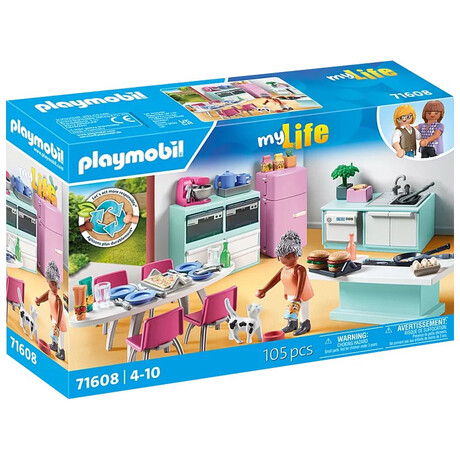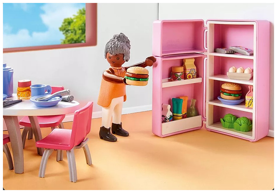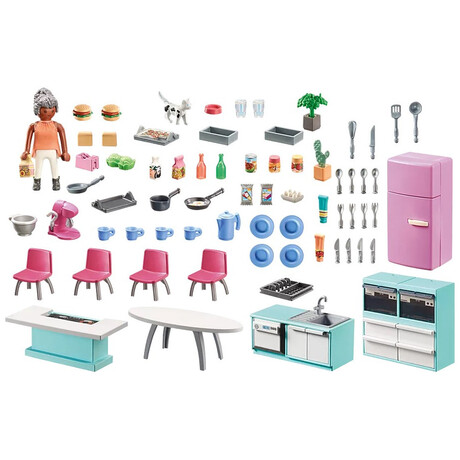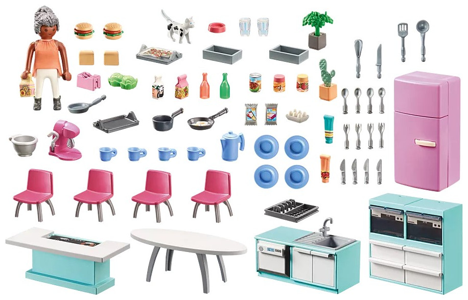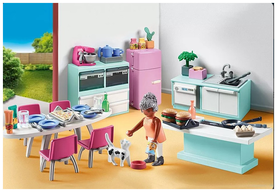 Το σετ παιχνιδιού Μοντέρνα κουζίνα περιλαμβάνει ψυγείο, μηχανή κουζίνας, μίξερ, τοστιέρα, πιάτα και πολλά άλλα αξεσουάρ. Μπορεί να συνδυαστεί με τα υπόλοιπα σετ παιχνιδιών της σειράς Μοντέρνο Σπίτι.