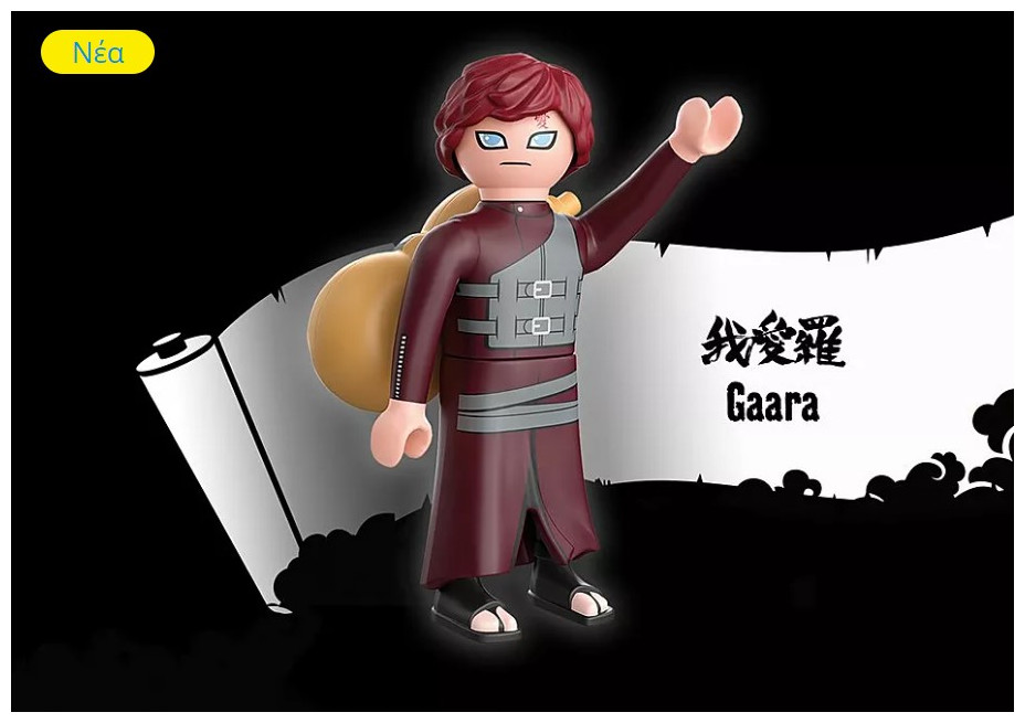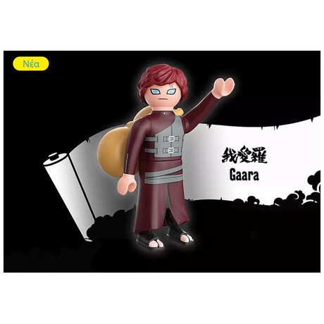 Η επιτυχημένη συνεργασία της PLAYMOBIL και του NARUTO περνάει σε δεύτερη φάση. Όλοι οι λάτρεις των anime ανυπομονούν για νέους χαρακτήρες από το συναρπαστικό κόμο του NARUTO. Έτσι, οι νέες συλλεκτικές φιγούρες με αυθεντικές λεπτομέρειες και αξεουάρ από την επιτυχημένη σειρά έρχοναι να κλέψουν την παράσταση και να κερδίσουν τις εντυπώσεις των πιστών θαυμαστών των anime. Το σετ PLAYMOBIL περιλαμβάνει τον χαρακτήρα του NARUTO SHIPPUDEN Gaara με καστανόξανθα μαλλιά και με τα χαρακτηριστικά τιρκουάζ μάτια του. Φοράει ένα μπορντό κοστούμι και κουβαλάει στην πλάτη του μία κολοκύθα που περιέχει την εμποτισμένη με τσάκρα άμμο του.