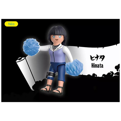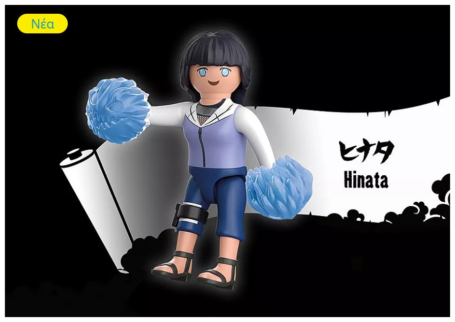 Η επιτυχημένη συνεργασία της PLAYMOBIL και του NARUTO περνάει σε δεύτερη φάση. Όλοι οι λάτρεις των anime ανυπομονούν για νέους χαρακτήρες από το συναρπαστικό κόμο του NARUTO. Έτσι, οι νέες συλλεκτικές φιγούρες με αυθεντικές λεπτομέρειες και αξεουάρ από την επιτυχημένη σειρά έρχοναι να κλέψουν την παράσταση και να κερδίσουν τις εντυπώσεις των πιστών θαυμαστών των anime. Το σετ PLAYMOBIL περιλαμβάνει την χαρακτήρα του NARUTO SHIPPUDEN Hinata με μαύρα μαλλιά. Φοράει ένα άσπρο-μωβ σακάκι, ένα μπλε παντελόνι μέχρι τον αστράγαλο, μαύρα σανδάλια νίντζα και μία κορδέλα στον λαιμό της με έναν πολύ αντισυμβατικό τρόπο.