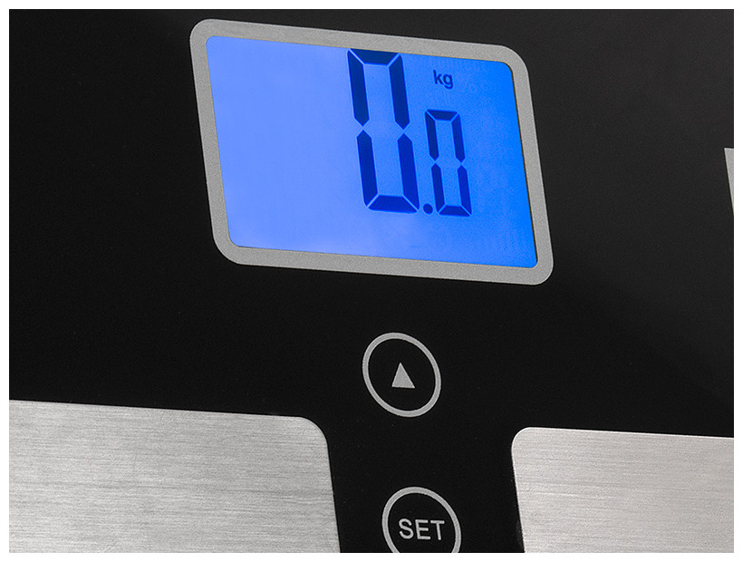• Ανάλυση σώματος: Μετρήστε ποσοστά λίπους, νερού, μυϊκής και οστικής μάζας, καθώς και θερμίδες, μέσω δύο ηλεκτροδίων στην επιφάνεια.