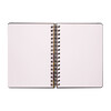 Με πρακτική σπιράλ (wire-o) βιβλιοδεσία, επιτρέπει το εύκολο άνοιγμα και την άνετη γραφή σε κάθε σελίδα. Το σημειωματάριο περιλαμβάνει 90 φύλλα A5, ιδανικά για σημειώσεις, σκίτσα ή οργάνωση καθημερινών ιδεών. Διαθέτει επίσης ελαστικό κλείσιμο για να παραμένει ασφαλές κατά τη μεταφορά και εσωτερική τσέπη για την αποθήκευση μικρών εγγράφων ή σημειώσεων.