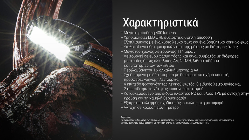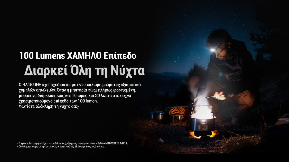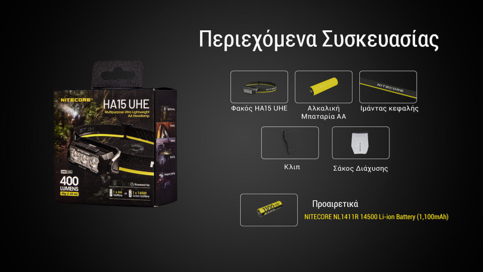 Το Nitecore HA15 είναι ένα εξαιρετικά ελαφρύ και αποδοτικό φακό κεφαλής, σχεδιασμένο για καθημερινή χρήση, outdoor δραστηριότητες και απαιτητικές εργασίες. Με ισχύ 400 lumens, τεχνολογία UHE (Ultra High Efficiency) και τροφοδοσία με απλές AA μπαταρίες (ή Ni-MH), προσφέρει φωτισμό υψηλής αξιοπιστίας χωρίς ανάγκη εξειδικευμένων μπαταριών.