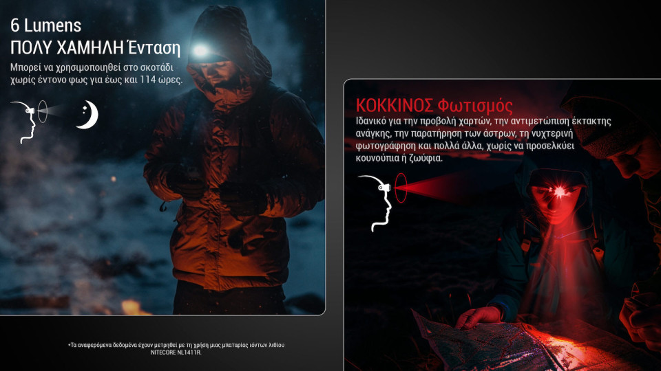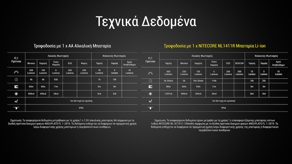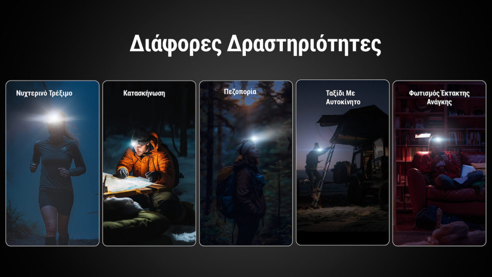 Turbo / High / Medium / Low / Ultralow, καθώς και λειτουργίες SOS & Beacon.