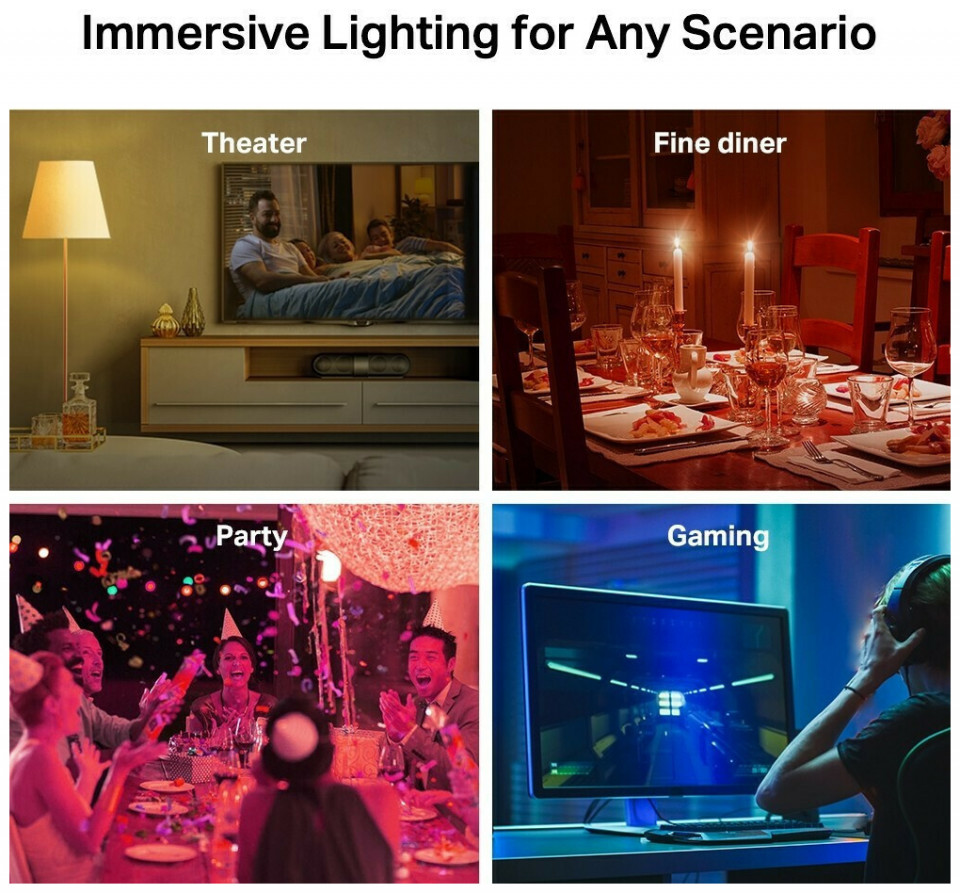 Πολύχρωμη - Σχεδιάστε εύκολα σενάρια για την καθημερινή ρουτίνα ή τις δραστηριότητές σας προσαρμόζοντας τη φωτεινότητα, τη θερμοκρασία φωτός και τα χρώματα - με 16.000.000 αποχρώσεις για να διαλέξετε.