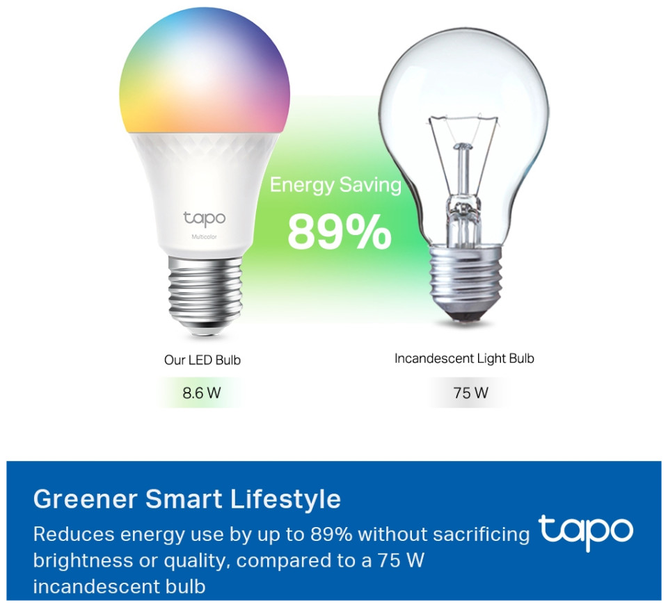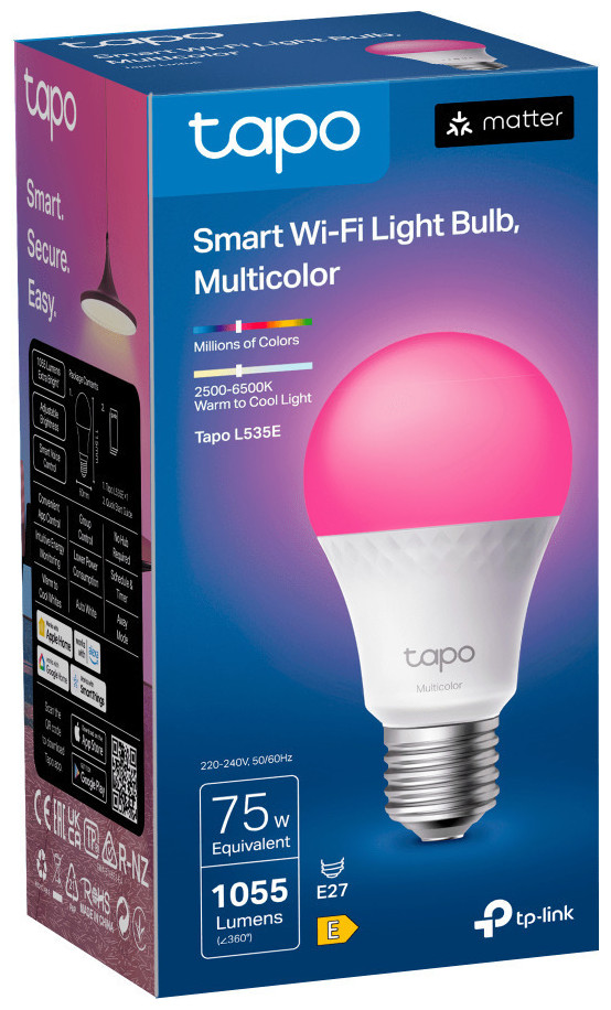 Η έξυπνη λάμπα LED TP-Link Tapo L535E είναι μια πολυχρωματική λάμπα E27 που προσφέρει φωτεινότητα 1055 lumen, ισχύος 9,5W, με δυνατότητα ρύθμισης χρώματος φωτισμού από 2500K έως 6500K.