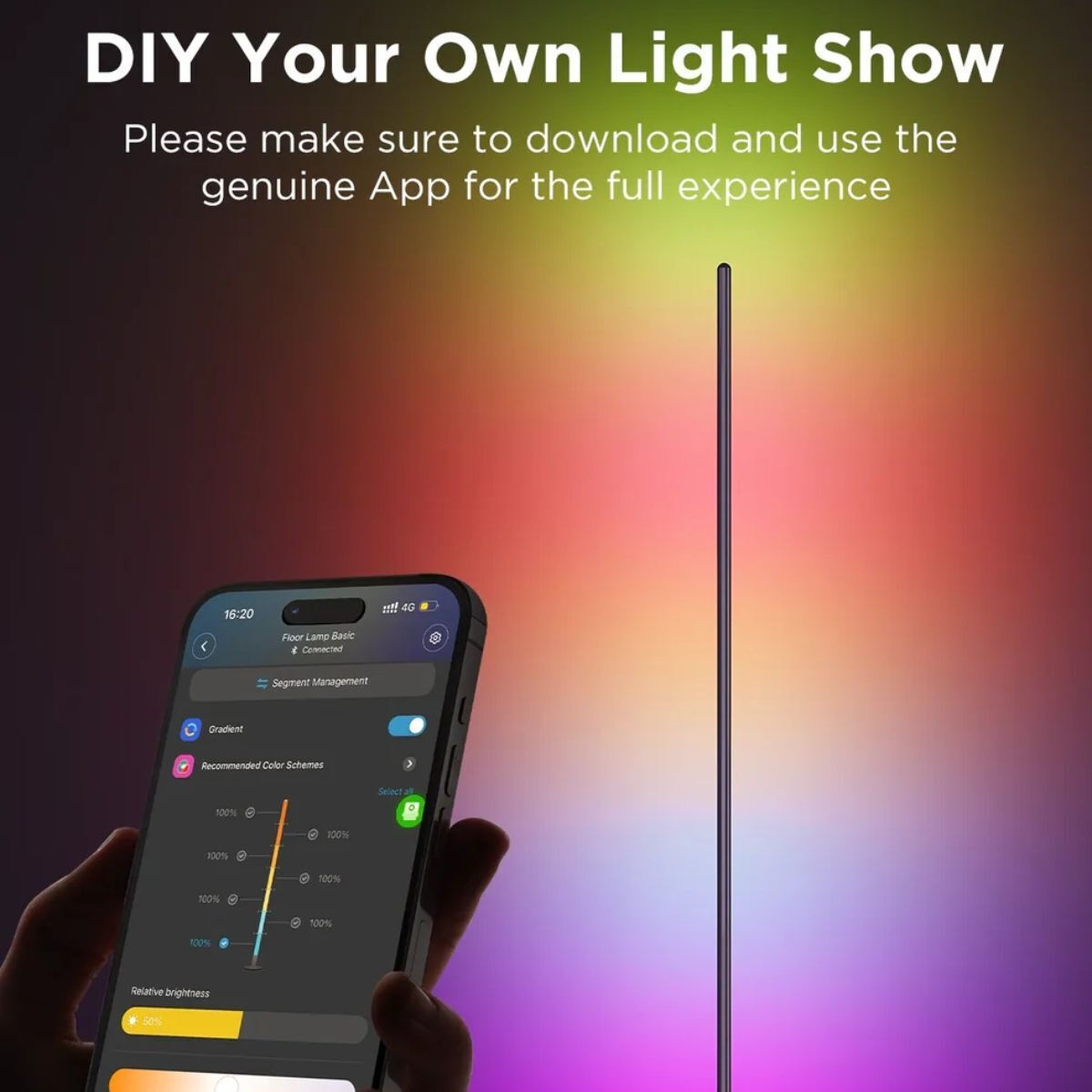 Το Govee Floor Lamp Lite H8076 είναι ένα έξυπνο φωτιστικό δαπέδου που προσφέρει ποικιλία φωτιστικών επιλογών με RGBICW LED τεχνολογία. Συνδυάζει πλούσια χρώματα, ρυθμιζόμενο λευκό φως και ευέλικτες λειτουργίες έξυπνου ελέγχου, καθιστώντας το ιδανική λύση για χώρους καθιστικού, gaming setups, home office ή χαλάρωσης.