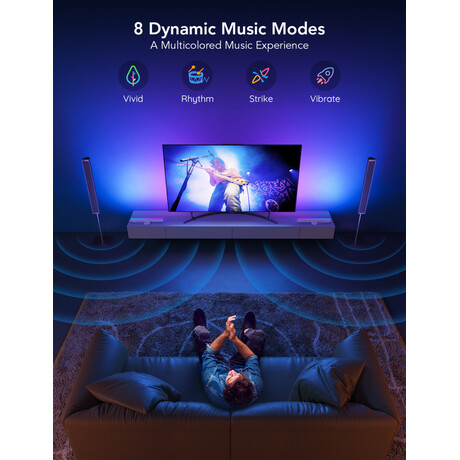 8 Dynamic Music Modes – Ο φωτισμός συγχρονίζεται με τον ρυθμό της μουσικής για party ατμόσφαιρα.