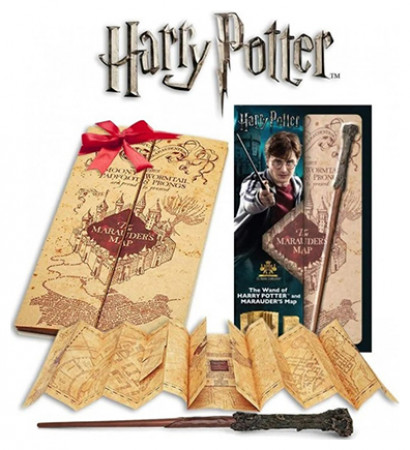 MUST HAVE FOR HARRY POTTER FANS - Harry's wand and a marauders map combines in one gift pack. Explore this expanding replica of the Marauder's Map, complete with folds and flaps hiding Hogwarts secrets.