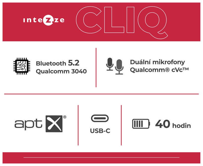 Τα in-ear ασύρματα ακουστικά Intezze CLIQ συνδέονται με κάθε συσκευή που διαθέτει bluetooth. Συνοδεύονται από θήκη μεταφοράς και φόρτισης των ακουστικών.