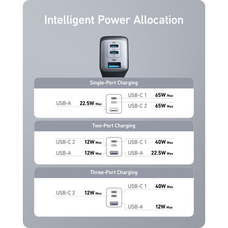• Έως 65W ολική ισχύς – γρήγορη φόρτιση για συσκευές υψηλής κατανάλωσης