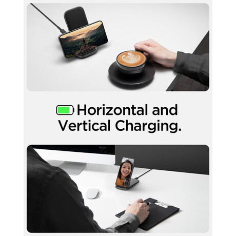 Ασύρματος φορτιστής Spigen Spigen ArcField Flex Wireless Charger Black (Pad&Stand / Samsung 15W Compatible / SMAPP). Συνδυάζει ευελιξία και υψηλή απόδοση φόρτισης, προσφέροντας δυνατότητα χρήσης τόσο ως pad όσο και ως stand για άνετη προβολή περιεχομένου κατά τη φόρτιση. Ο κομψός, minimal σχεδιασμός σε μαύρο φινίρισμα ταιριάζει ιδανικά σε κάθε γραφείο ή κομοδίνο, ενώ η υποστήριξη έως 15W εξασφαλίζει γρήγορη και σταθερή ασύρματη φόρτιση για συμβατές συσκευές Samsung και όχι μόνο.