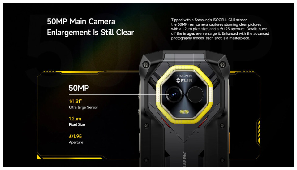 Πίσω: 50MP κύρια κάμερα, θερμική κάμερα FLIR (160x120 pixels, 8.7Hz).