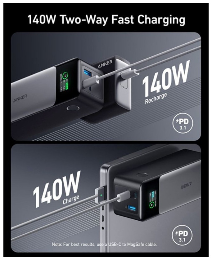 140 W διπλής κατεύθυνσης ταχεία φόρτιση (Power Delivery 3.1)