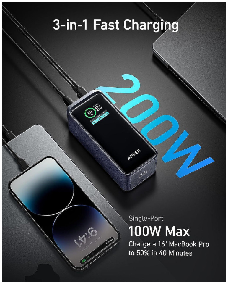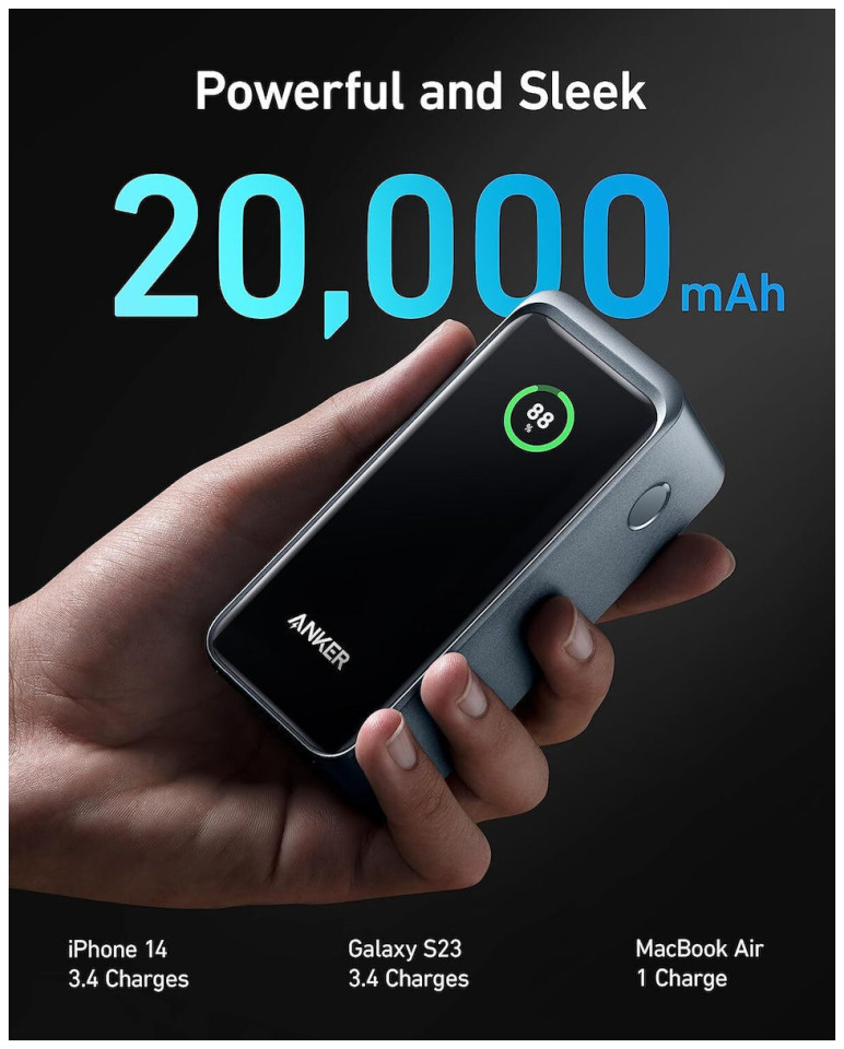 Το power bank της Anker έχει χωρητικότητα 20000mAh που μπορεί να προσφέρει περίπου 4 φορτίσεις σε ένα συνηθισμένο κινητό τηλέφωνο. Διαθέτει μία θύρα USB-A και μία θύρα USB-C.