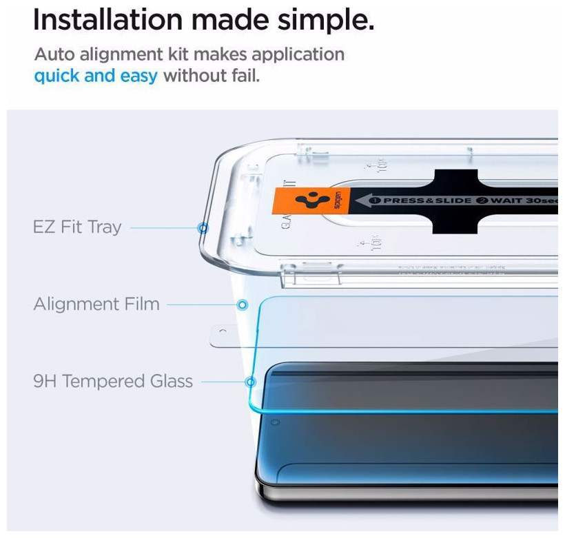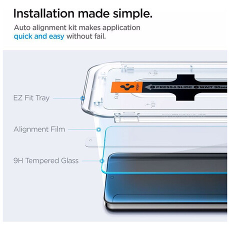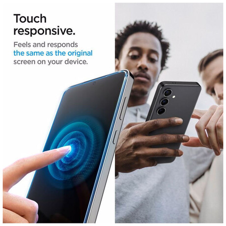 Το tempered glass της Spigen είναι ένα σκληρυμένο γυαλί, ειδικά κατασκευασμένο για την κάλυψη και την προστασία της οθόνης του κινητού σας από γρατζουνιές κι άλλες φθορές. Δεν επηρεάζει τη λειτουργία της οθόνης. Σε περίπτωση πτώσης του κινητού, δεν εγγυάται ότι δε θα σπάσει κι η οθόνη μαζί με αυτό, ωστόσο είναι μια επιπλέον προστασία. Είναι συμβατό με το Galaxy S24+.