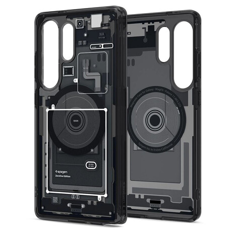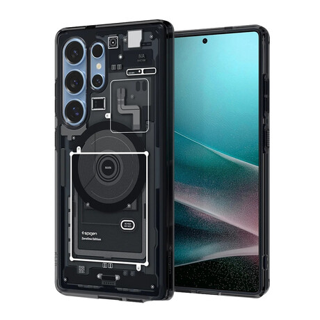 Θήκη Spigen Spigen Galaxy S25 Ultra Ultra Hybrid MagFit Zero One Black (ACS08957). Παρέχει στιβαρή και ταυτόχρονα διακριτική προστασία για το Samsung Galaxy S25 Ultra, συνδυάζοντας ανθεκτική κατασκευή με διαφανές και premium design. Η τεχνολογία MagFit Zero One εξασφαλίζει ισχυρή μαγνητική συμβατότητα με MagSafe/MagFit αξεσουάρ και σταθερή ασύρματη φόρτιση, διατηρώντας παράλληλα λεπτό προφίλ και καθαρή εμφάνιση.