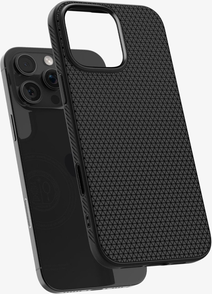 Θήκη Spigen Spigen iPhone 16 Pro Max Liquid Air T MagFit Matte Black (ACS09114). Παρέχει εξαιρετική, καθημερινή προστασία για το Apple iPhone 16 Pro Max με λεπτό, ελαφρύ προφίλ που διατηρεί την original αίσθηση της συσκευής χωρίς περιττό όγκο. Η τεχνολογία MagFit ενισχύει τη μαγνητική συμβατότητα με MagSafe/MagFit αξεσουάρ για σταθερή ασύρματη φόρτιση και πρόσδεση, ενώ το Matte Black φινίρισμα προσφέρει premium εμφάνιση και σταθερό κράτημα.
