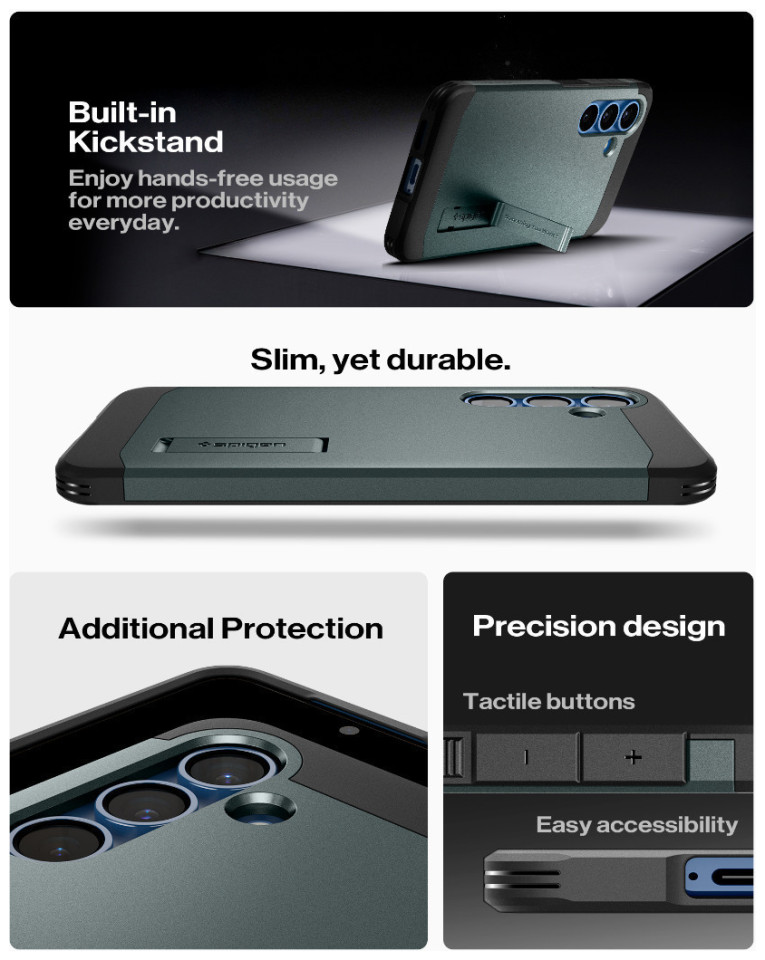 Η Θήκη Spigen Tough Armor παρέχει εξαιρετική προστασία για τη συσκευή σας. Είναι κατασκευασμένη από υλικά υψηλής ποιότητας, που συνδυάζουν TPU και πολυανθρακικό, προσφέροντας αντοχή σε κραδασμούς και κρούσεις.