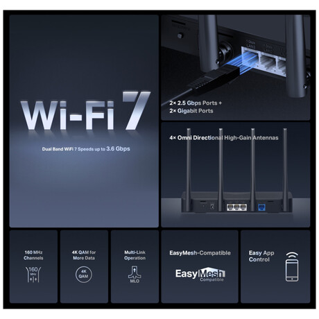 Εξοπλισμένο με 1 × θύρα WAN 2,5 Gbps, 1 × θύρα LAN 2,5 Gbps και 2 × θύρες Gigabit. Το MR27BE σας επιτρέπει να εκμεταλλευτείτε πλήρως την ευρυζωνική σας ταχύτητα. Συνδέστε τους υπολογιστές σας, τις έξυπνες τηλεοράσεις, τις κονσόλες παιχνιδιών ή τις συσκευές NAS στις θύρες για ταχύτατη ενσύρματη σύνδεση.