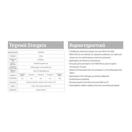 Δυνατότητα ρύθμισης σε 5 ταχύτητες για εξατομικευμένη άνεση.