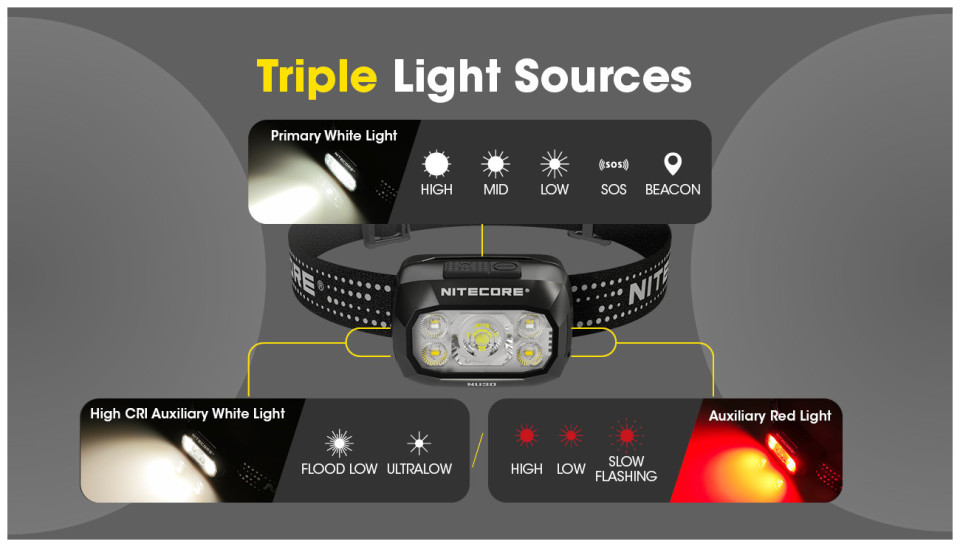 Ο NU30 συνδυάζει 4 πυρήνες UHE LED με το πολύπλευρο κάτοπτρο, ενισχύοντας σημαντικά τόσο τη φωτεινότητα όσο και την απόσταση, ιδανικός για πεζοπορία, κάμπινγκ και νυχτερινό τρέξιμο.