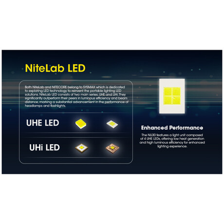 Ο NU30 διαθέτει μία ελαφριά μονάδα που αποτελείται από 4 LED UHE, προσφέροντας χαμηλή παραγωγή θερμότητας και υψηλή φωτεινή απόδοση για βελτιωμένη εμπειρία φωτισμού.