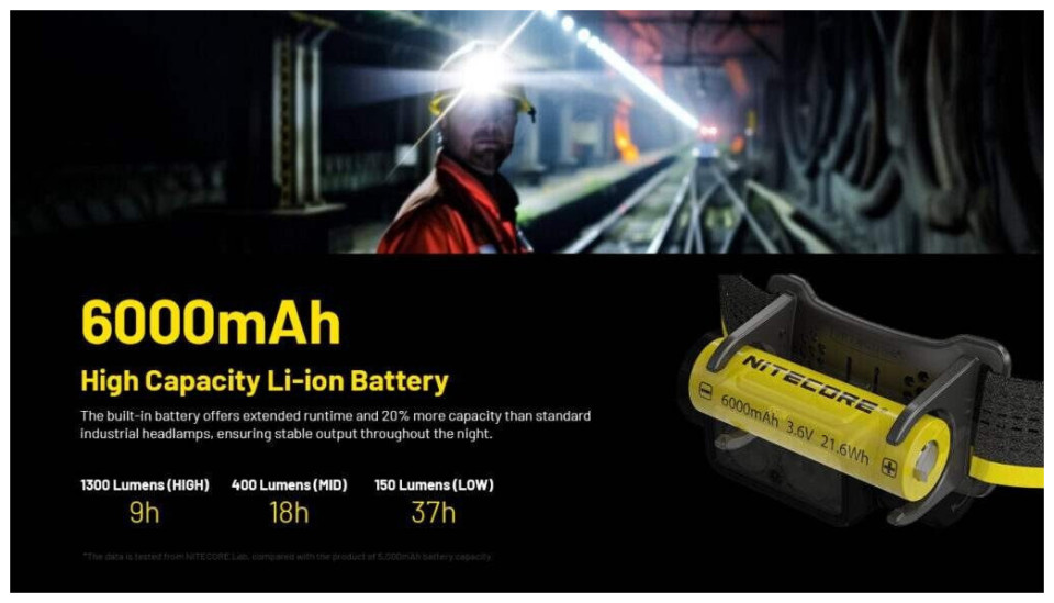 Η ενσωματωμένη μπαταρία προσφέρει παρατεταμένο χρόνο λειτουργίας και 20% μεγαλύτερη χωρητικότητα από μία τυπική μπαταρία για επαγγελματικούς φακούς, εξασφαλίζοντας σταθερή απόδοση καθ’ όλη τη διάρκεια της νύχτας.