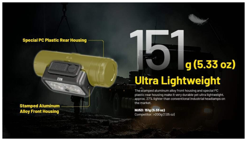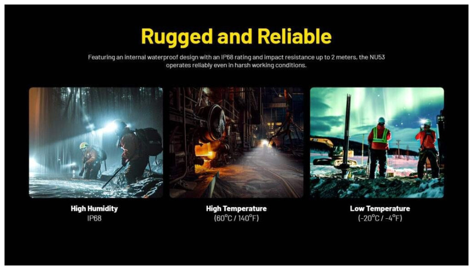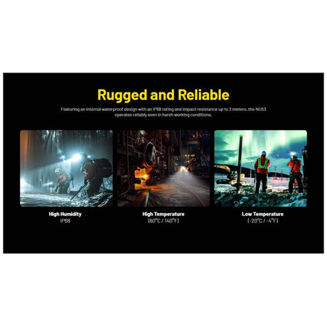 Διαθέτοντας εσωτερική αδιάβροχη σχεδίαση με αξιολόγηση IP68 και αντοχή σε κρούση έως 2 μέτρα, ο φακός NITECORE NU53 λειτουργεί αξιόπιστα ακόμη και σε δύσκολες συνθήκες εργασίας.