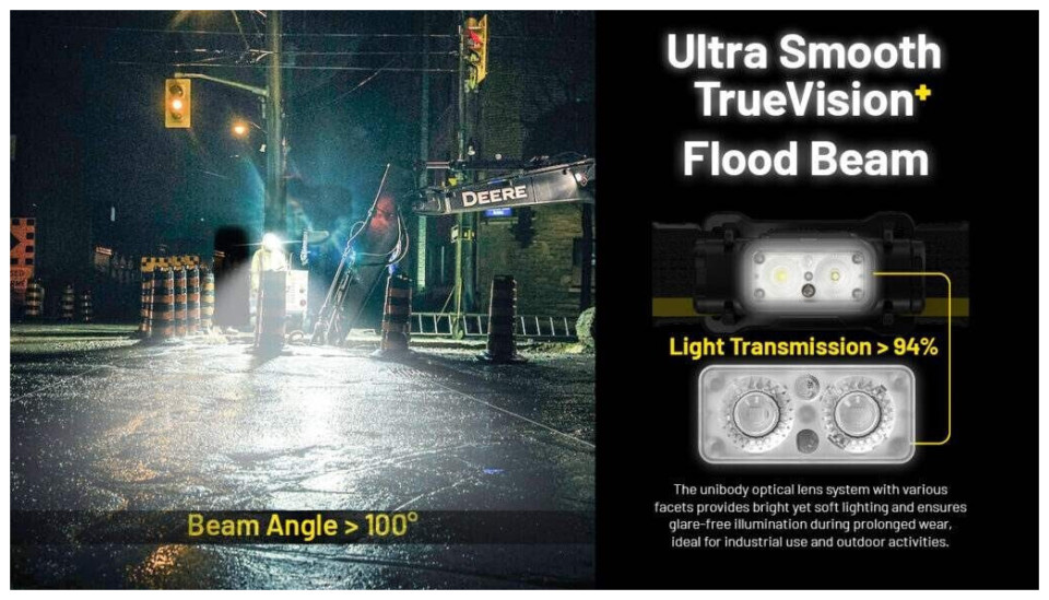 Το σύστημα οπτικών φακών ενιαίου σώματος παρέχει φωτεινό αλλά απαλό φωτισμό με διάφορα και εξασφαλίζει φωτισμό χωρίς θάμβωση κατά τη διάρκεια παρατεταμένης χρήσης, καθιστώντας τον ιδανικό για επαγγελματική χρήση και υπαίθριες δραστηριότητες.