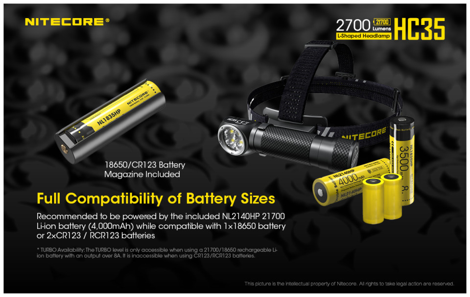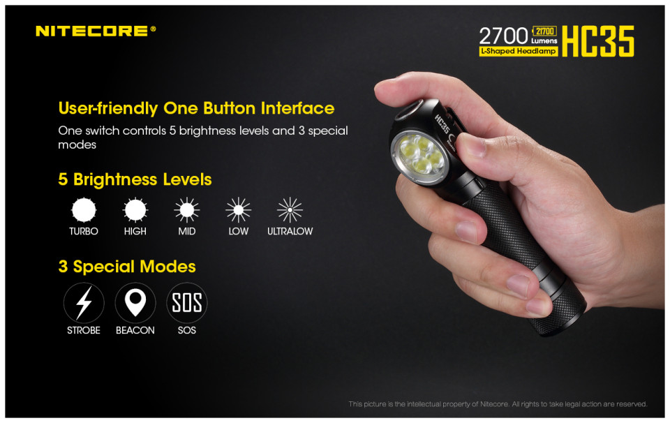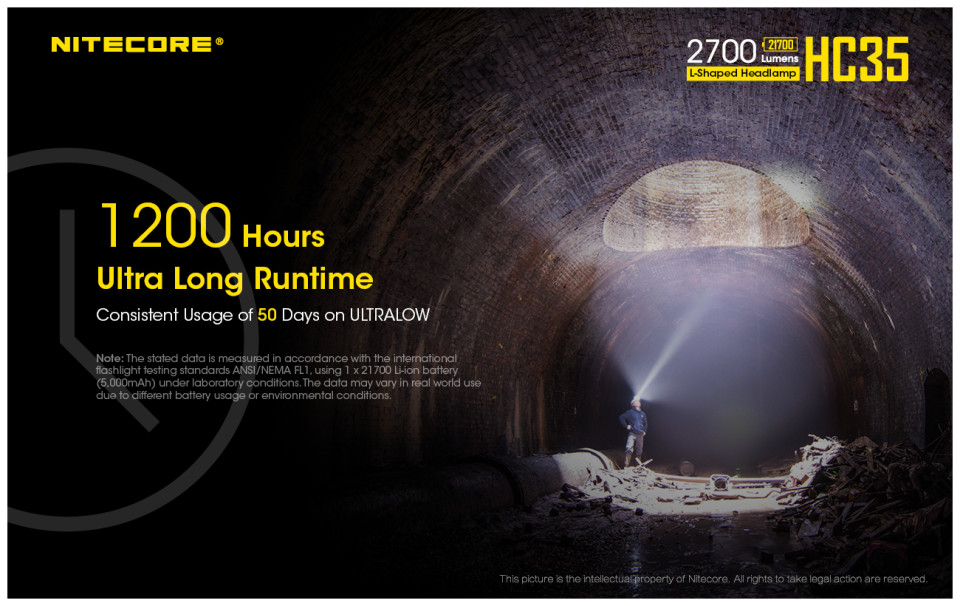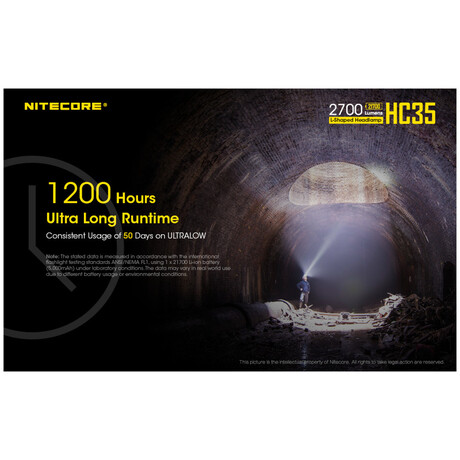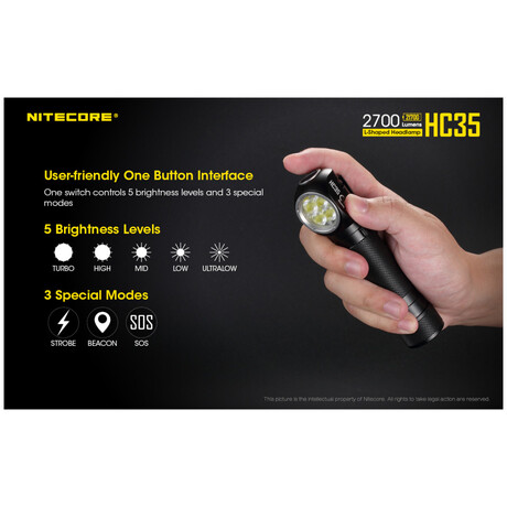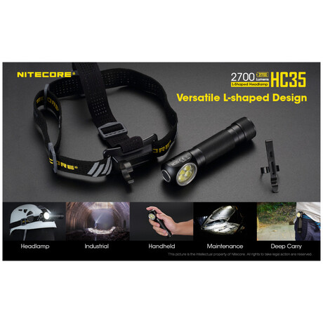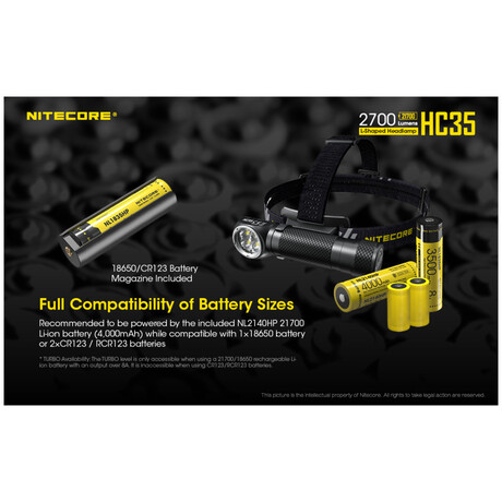 Φακός Κεφαλής LED επαναφορτιζόμενος 2700 Lumens με μπαταρία 21700 4000mAh της NITECORE, HEADLAMP HC35. Κατάλληλος για ορειβασία, camping, και γενικότερα δραστηριότητες εξωτερικού χώρου που απαιτούν ελευθερία κινήσεων. Φορτίζεται μέσω micro-USB και είναι εφοδιασμένος με 4 LED CREE XP-G3 S3 , με διάρκεια ζωής 50.000 ώρες λειτουργία , ο HC35 έχει εξαιρετικά υψηλή απόδοση μέγιστης έντασης δέσμης που φθάνει τα 4500 κεριά και μέγιστη απόσταση δέσμης που φθάνει τα 134 μέτρα.