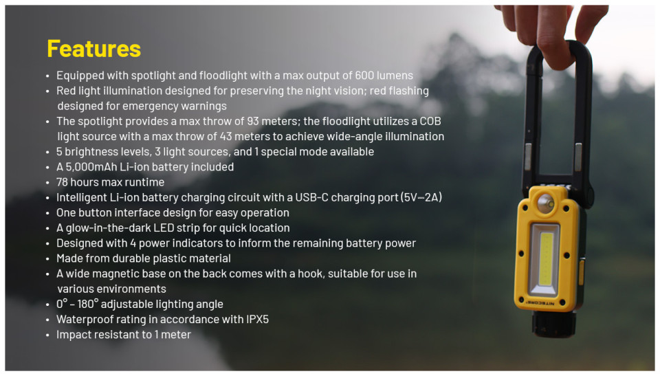 NWL20 Φακός Συνεργείου Μπαταρίας LED